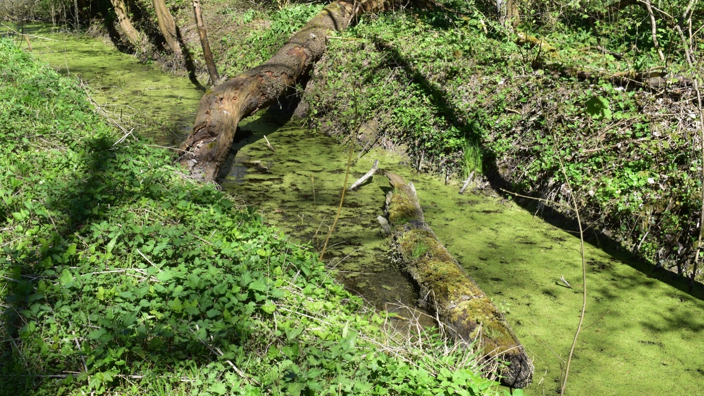 Wasserstern und Wasserlinsen bedecken die Oberfläche dieses strömungsarmen Gewässers.