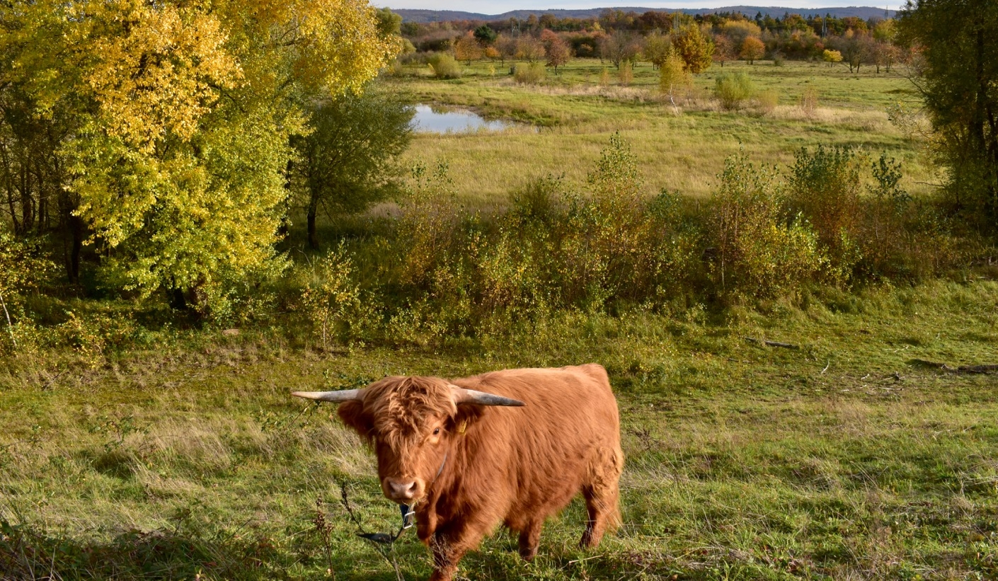 Vor allem die nährstoffarmen Sandrasen sind hier wertvoll. Zur Offenhaltung der Wiesenflächen und zur Steigerung der Artenvielfalt weiden in diesem Gelände Schottische Hochlandrinder.