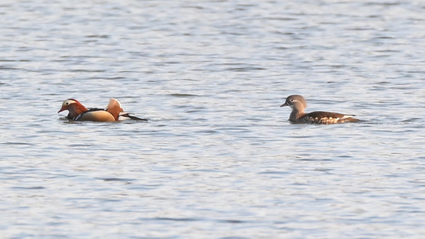 Im März 2026 sehe ich erstmals auch hier ein Paar Mandarinenten. Diese sind nicht bei uns heimisch, sondern stammen von Tieren, die irgendwann aus einem Zoo oder Vogelpark geflohen sind. Am Erlachsee auf der anderen Seite der Stadt findet man sie häufiger.