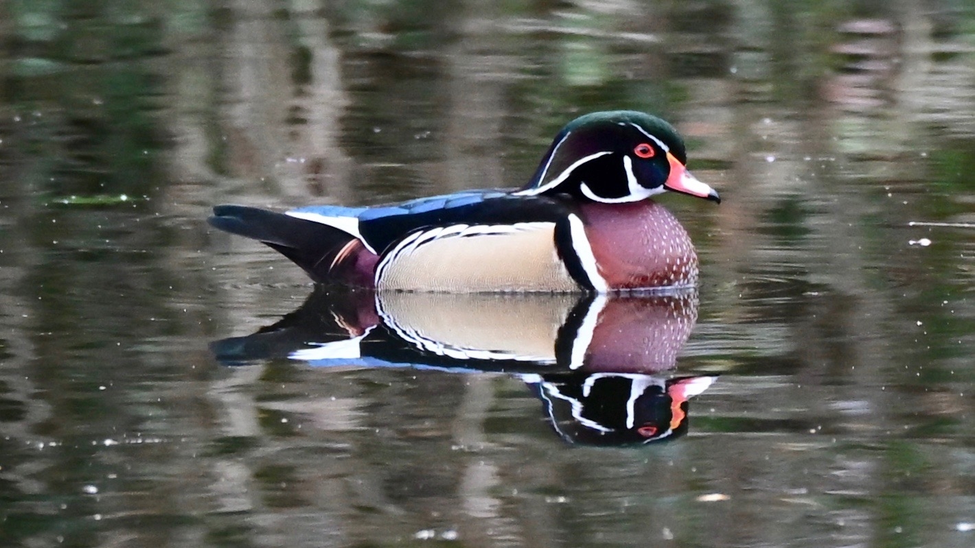 2025 und 2026 entdeckte ich auch manchmal eine Brautente zwischen den einheimischen Enten. Brautenten sind ähnlich farbenfroh wie Mandarinenten, stammen aber ursprünglich aus Amerika. Auch sie wurden über Zoos nach Deutschland gebracht, sind aber in freier Wildbahn bei uns bisher noch viel seltener als Mandarinenten.