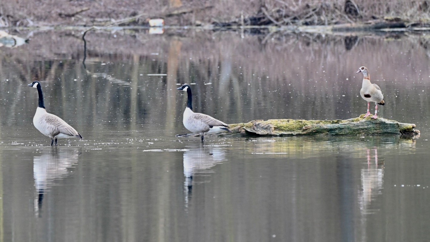 Natürlich sieht man auch am Erlachsee fast immer die ebenfalls nicht einheimischen Nilgänse und Graugänse, die sich in den letzten Jahren sehr stark in Deutschland verbreiten.
