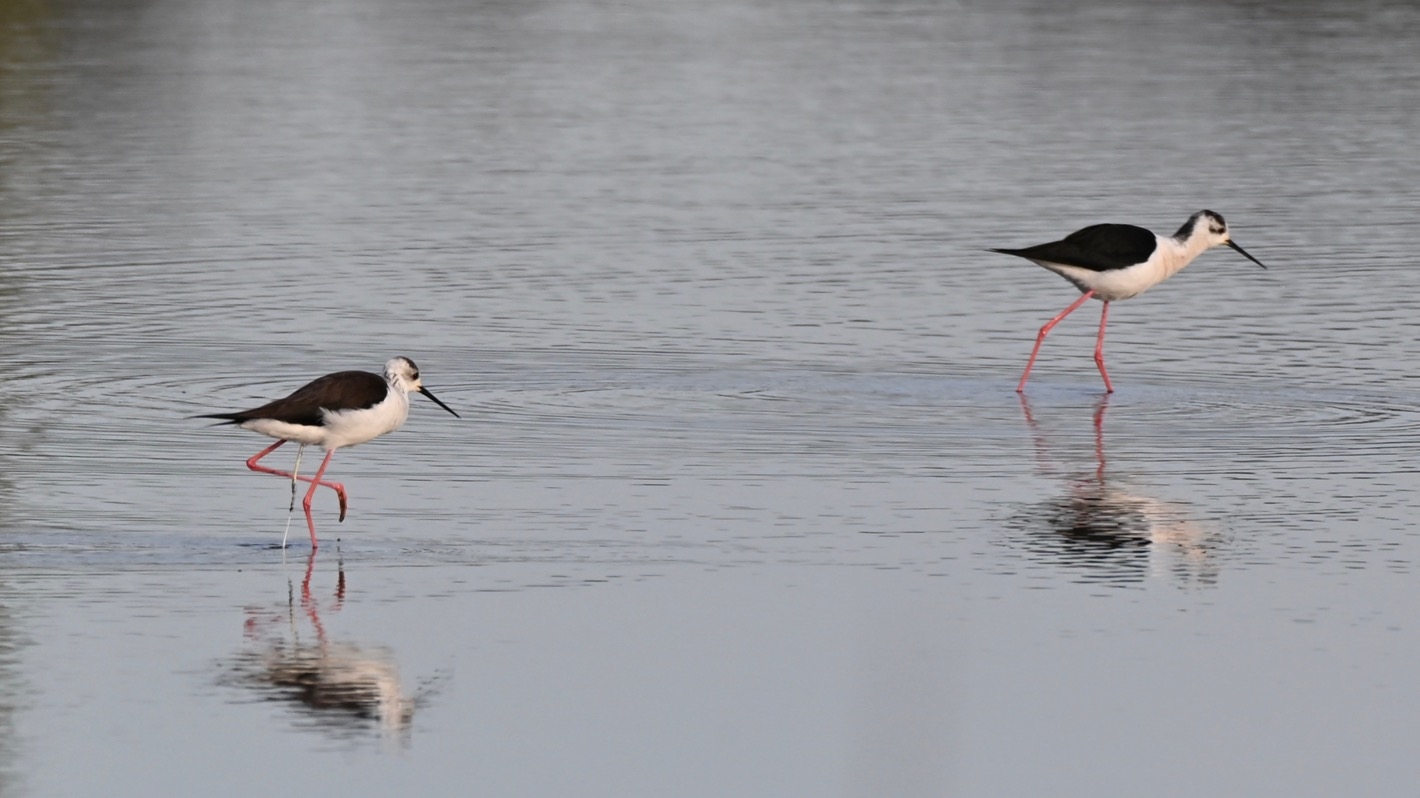 An einem Tag im April sehe ich hier zum ersten Mal drei Stelzenläufer.
