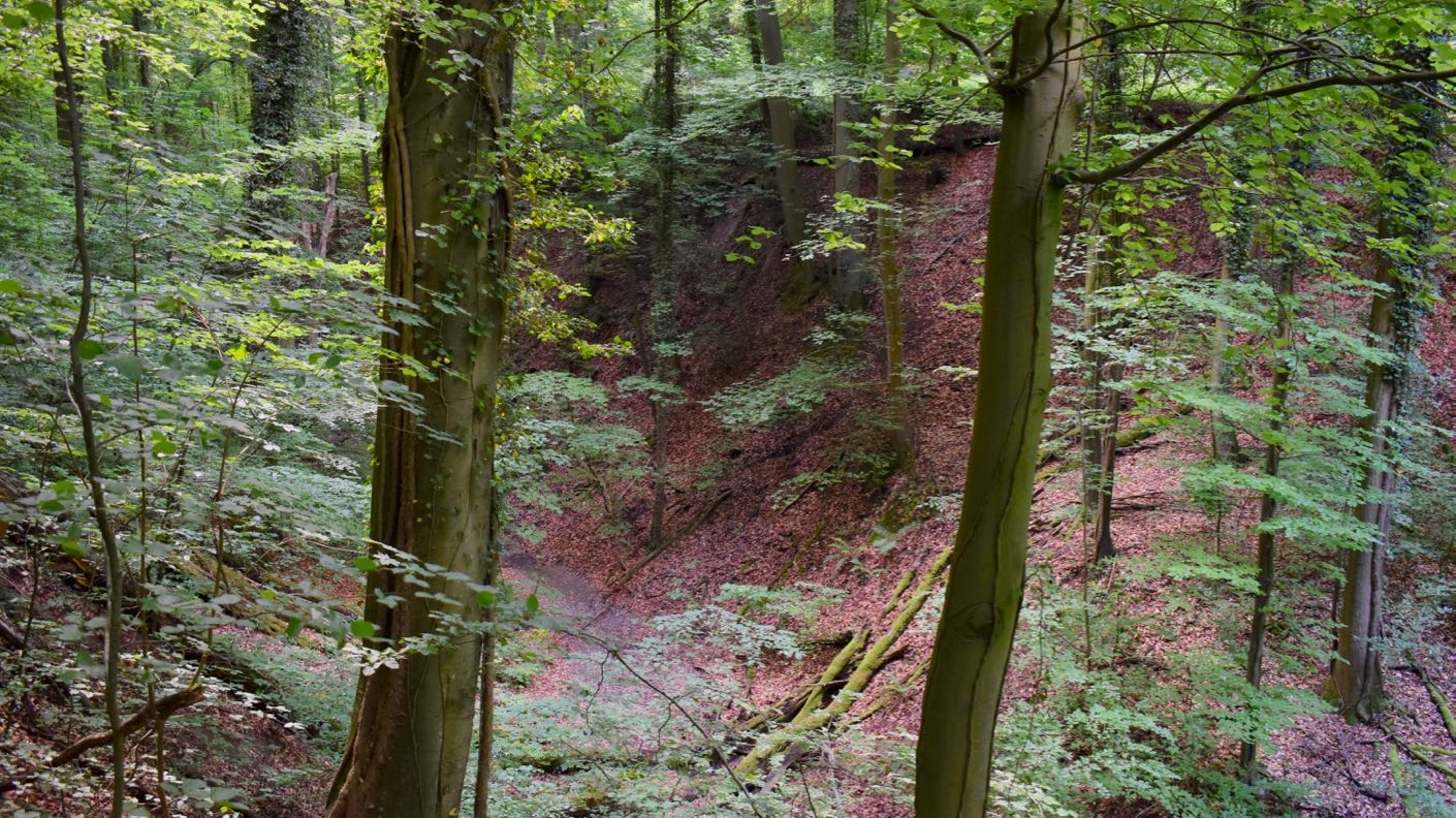 Den Boden des Grabens darf man nicht betreten. Aber von den breiten Wanderwegen rechts und links kann man gut hinabblicken.