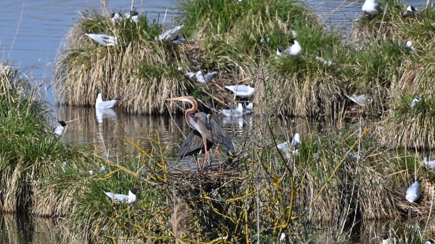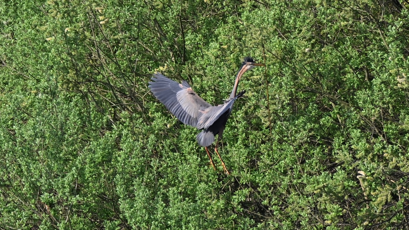 Die Wagbachniederung ist eine der wenigen Stellen in Deutschland, an denen die sehr seltenen Purpurreiher brüten. Meist braucht man ein Spektiv oder ein gutes Teleobjektiv, um diese Vögel gut sehen zu können. Mit viel Glück kann man sie aber auch manchmal fast direkt neben dem Weg sehen, so wie hier im Sommer 2025.