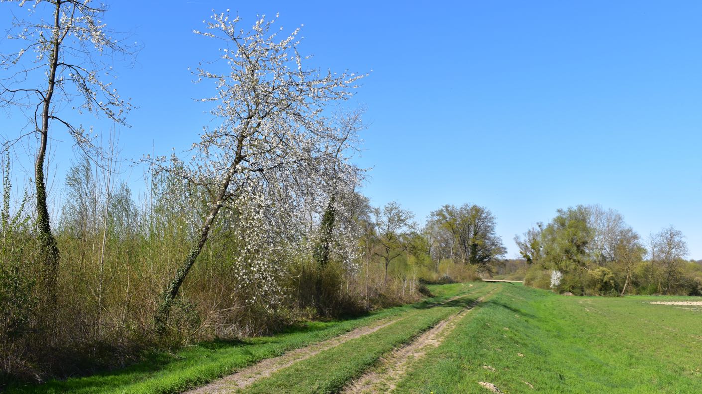 Zwischen dem heutigen Hochwasserdamm und dem Rhein liegt der Auwald am Bellenkopf. Bei Hochwasser ist der Verbindungsweg überschwemmt.