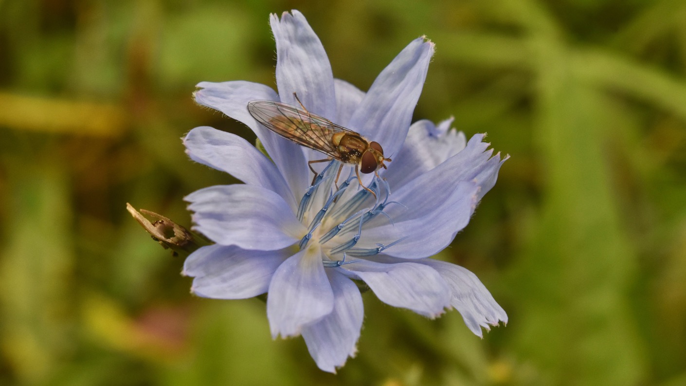 Am Hochwasserdamm bieten viele Blumen Lebensraum für Schmetterlingen und anderen Insekten.