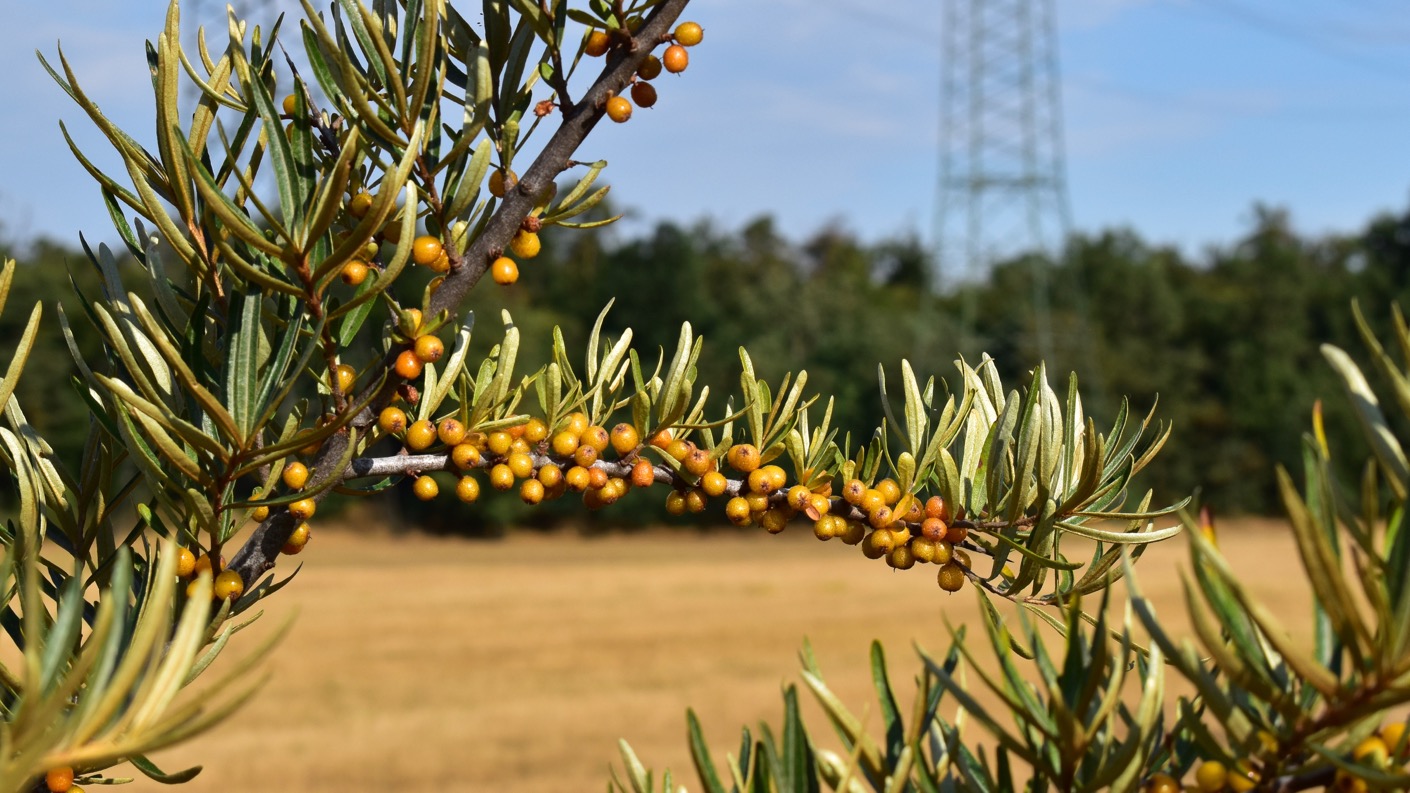An einer Stelle wächst am Wegrand Sanddorn - ein in unserer Region recht seltener Anblick.