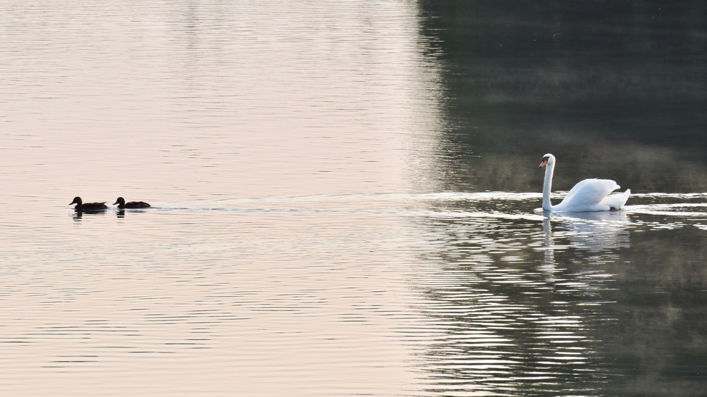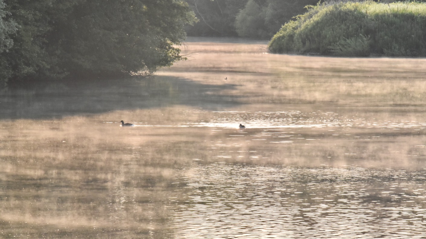 Besonders gut gefällt mir der See am frühen Morgen kurz nach Sonnenaufgang, wenn noch eine ganz dünne Nebelschicht auf dem Wasser tanzt.