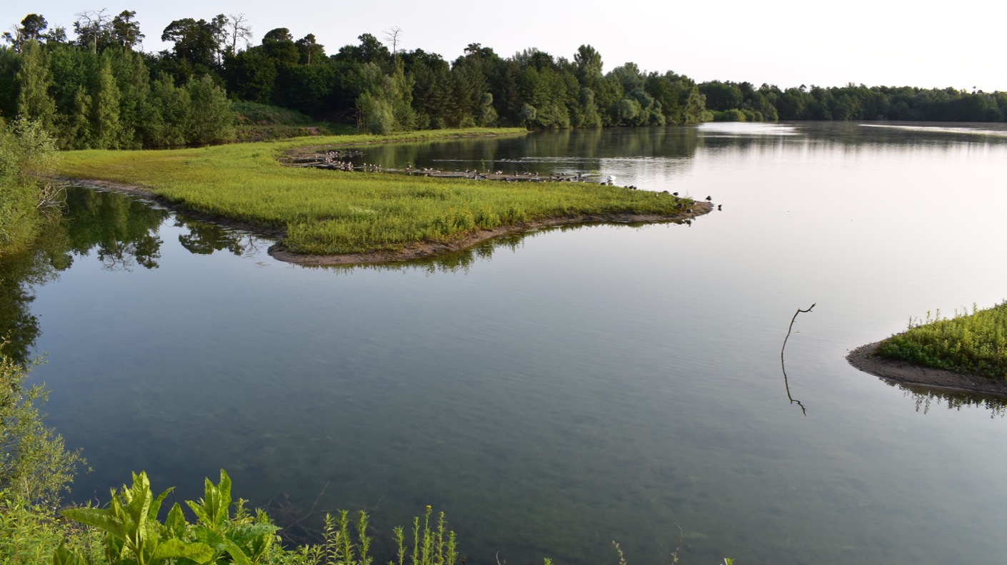 Da bereits während Nutzung als Baggersee geplant war, diesen See danach komplett den Wasservögeln zu überlassen, wurden schon beim Kiesabbau passende Landschaftsformen mit Kiesinseln, Steilufer etc. angelegt.