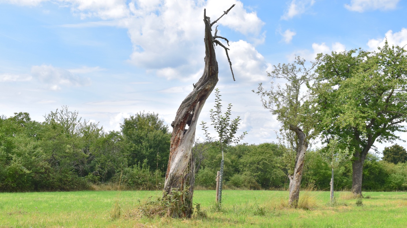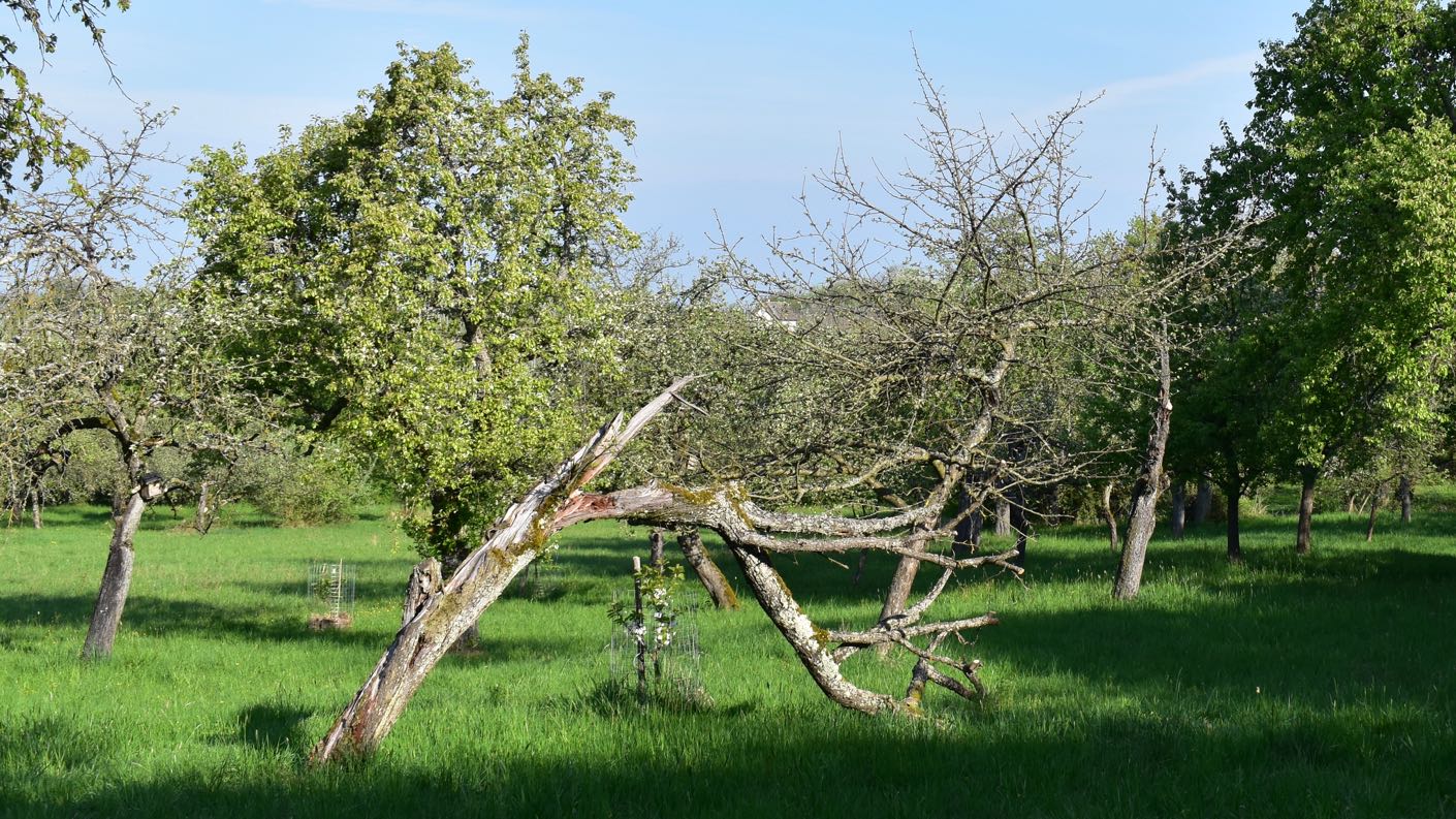 Die alten, teilweise bereits kahlen Obst- und Nussbäume bieten Lebensraum für viele Tiere.