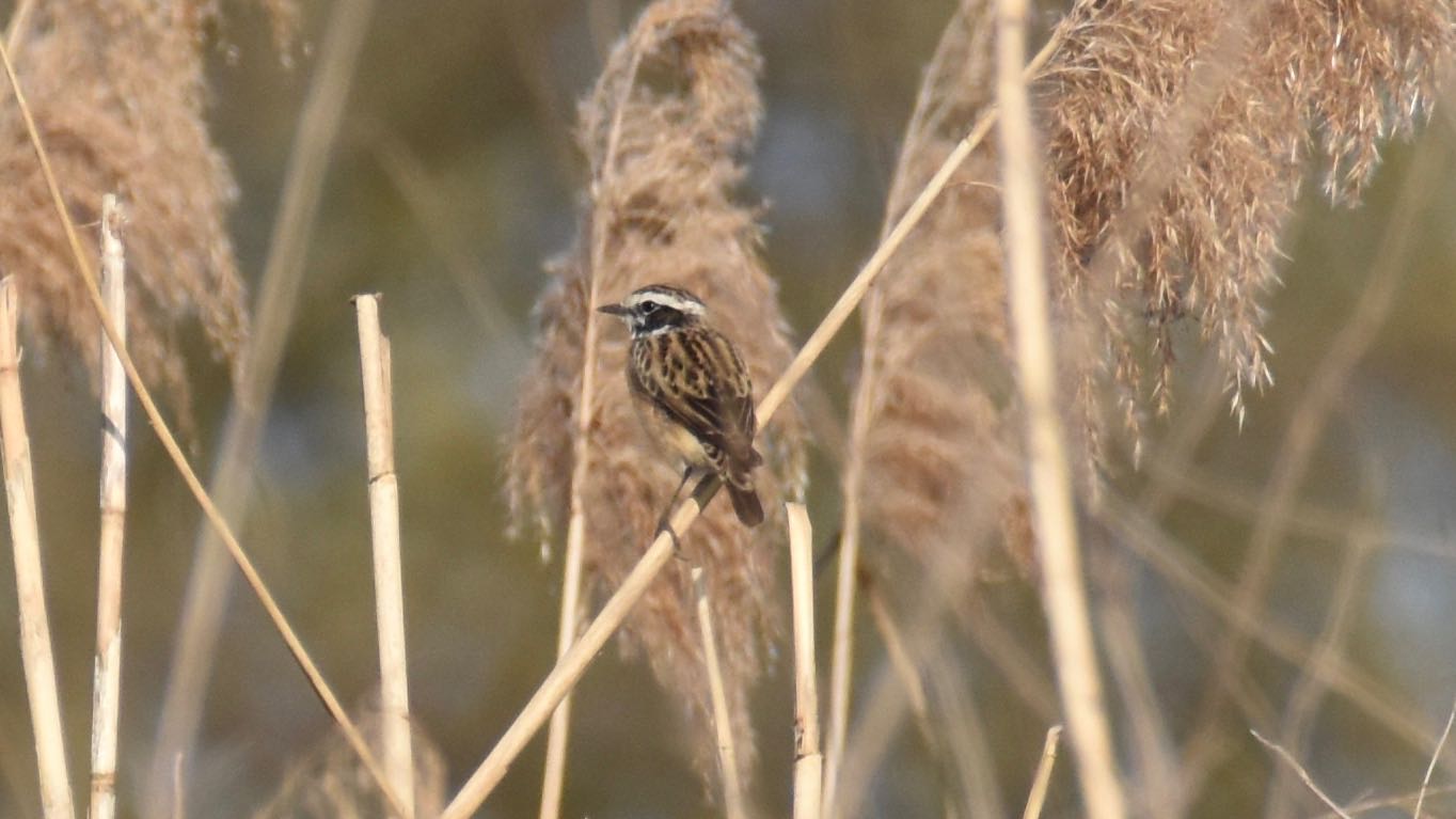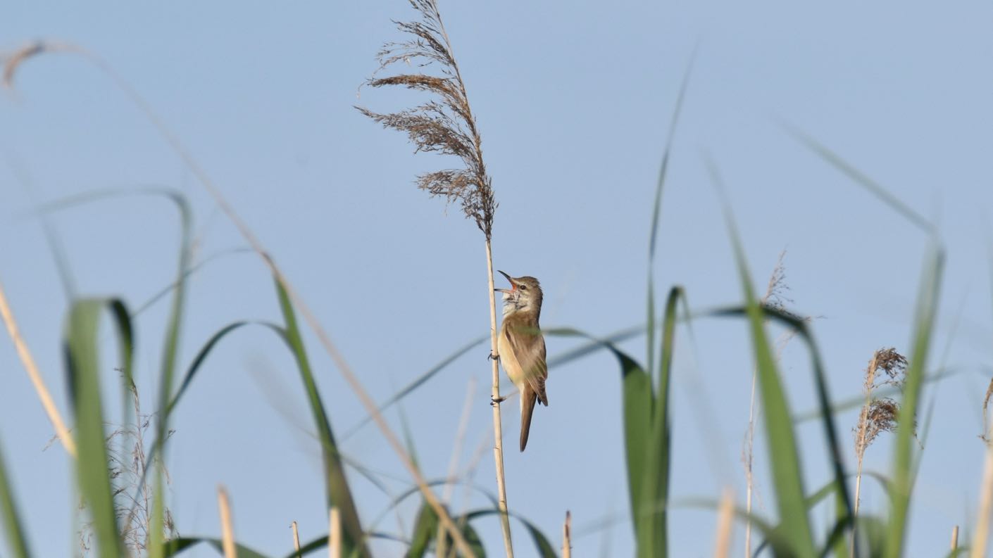 Die Bekassine erkennt man wegen der großen Entfernung mit bloßem Auge kaum.