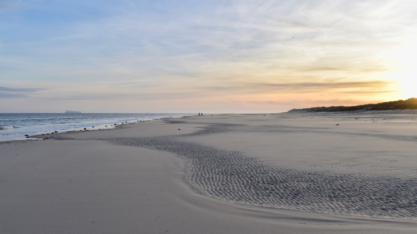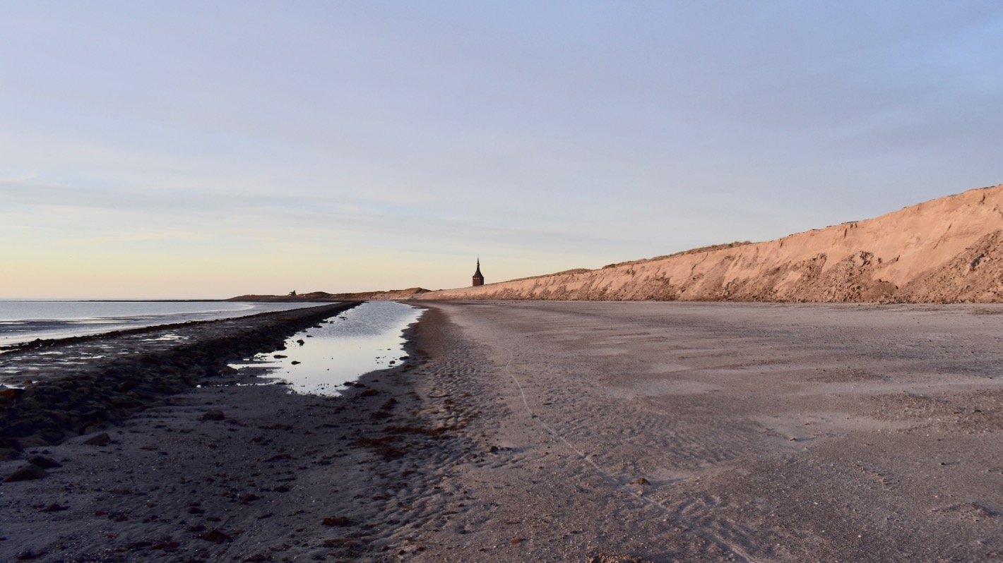 Viele Kilometer weit kann man dann am Nordstrand wandern. Im Osten ist der Strand im Winter recht einsam. Je näher wir dem Ort kommen, desto mehr Spaziergänger sehen wir dann. Aber insgesamt ist es um diese Jahreszeit hier entspannend ruhig.