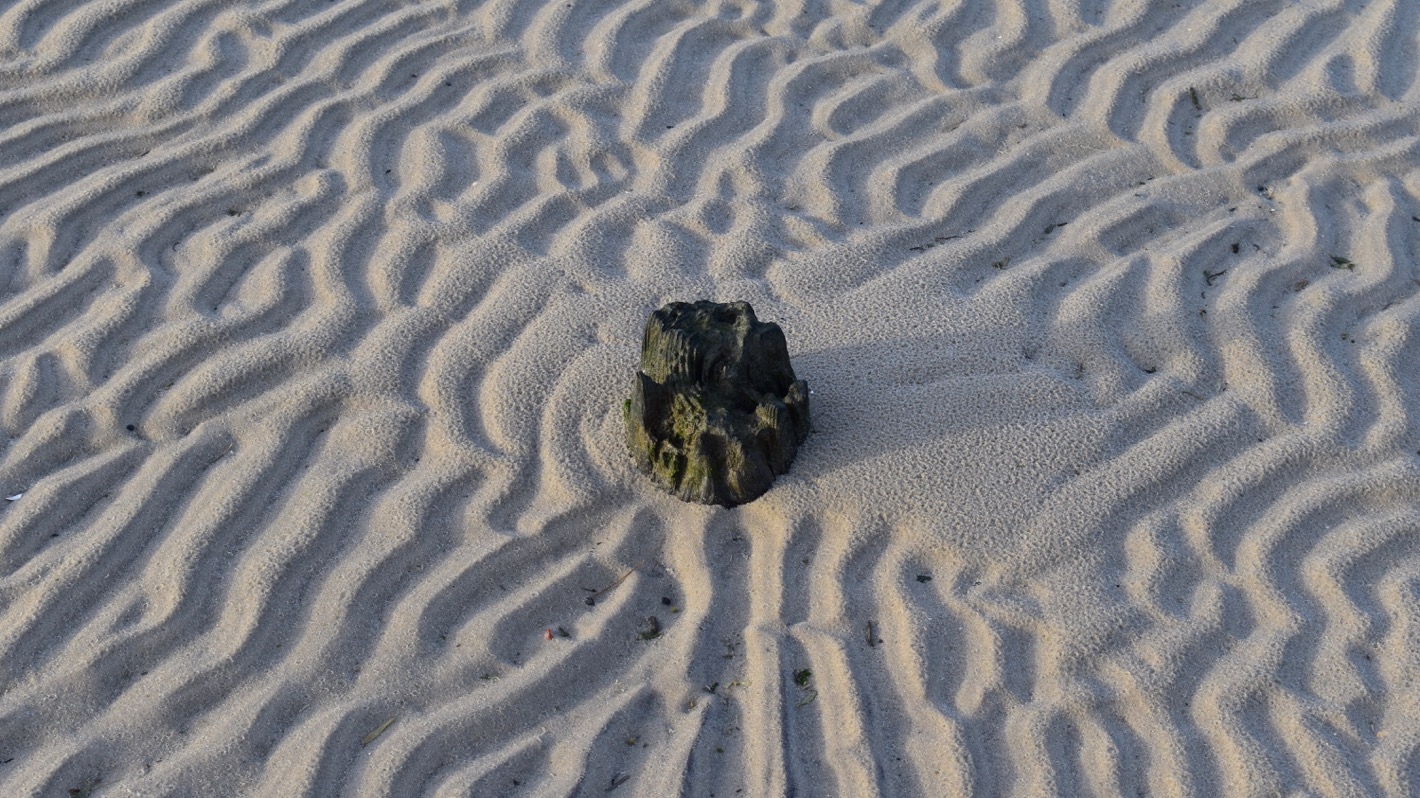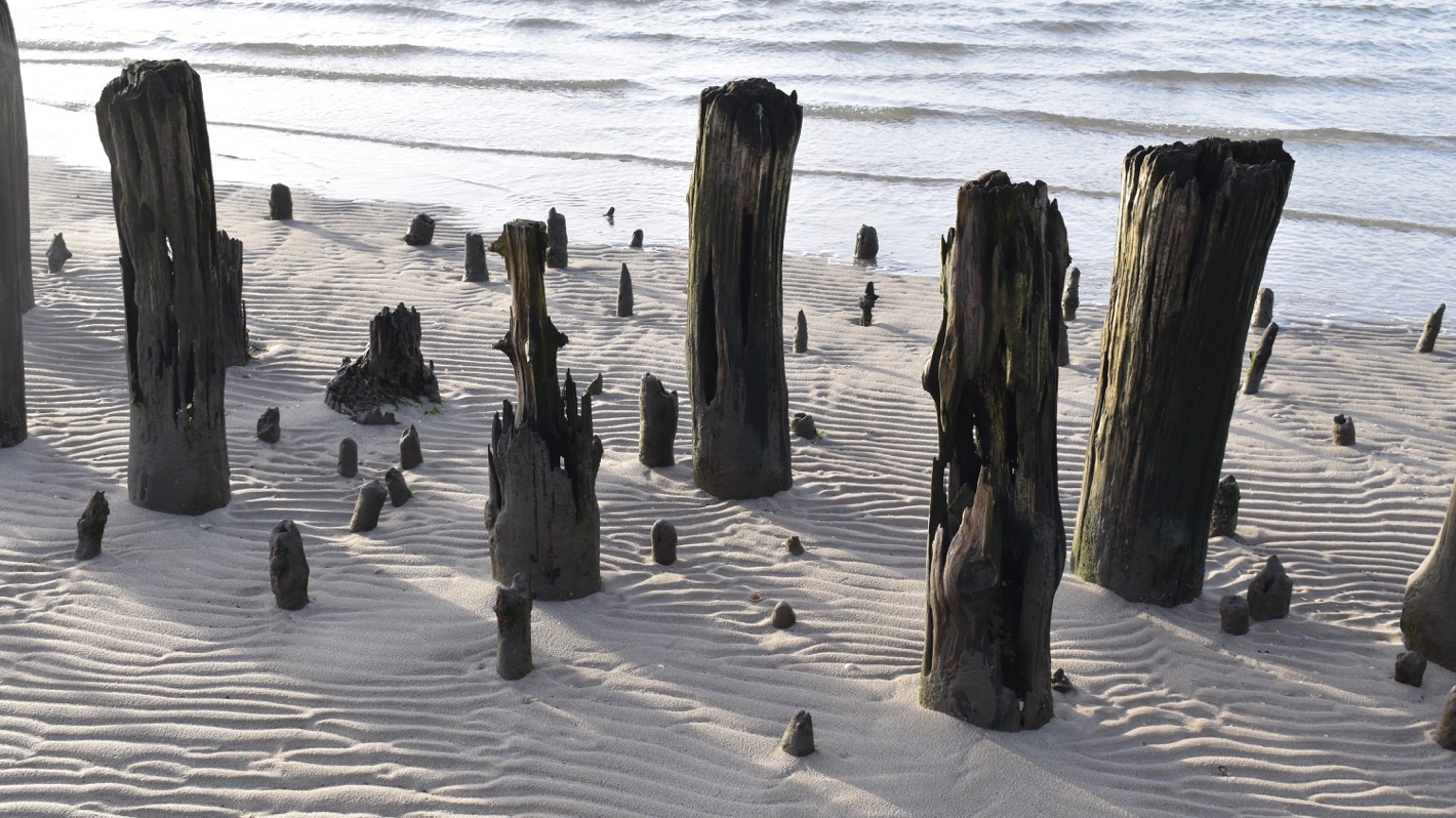 Ganz im Osten der Insel zeugen nur noch verrottende Holzpfosten davon, dass auch hier früher einmal Schiffe anlegen konnten.
