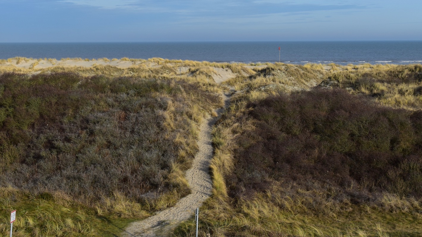 An einigen Stellen führen kurze Wege über die schmale Dünenlandschaft zum Sandstrand.