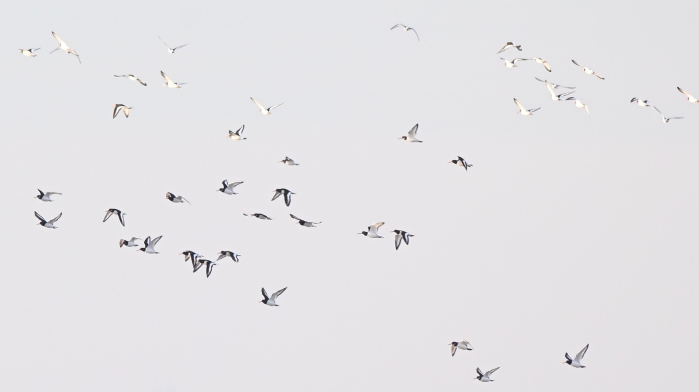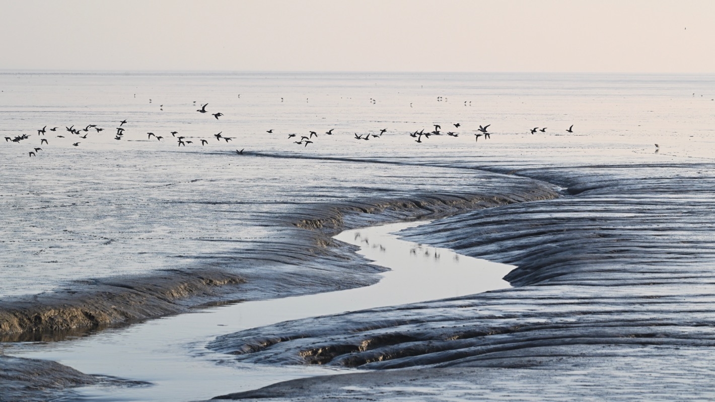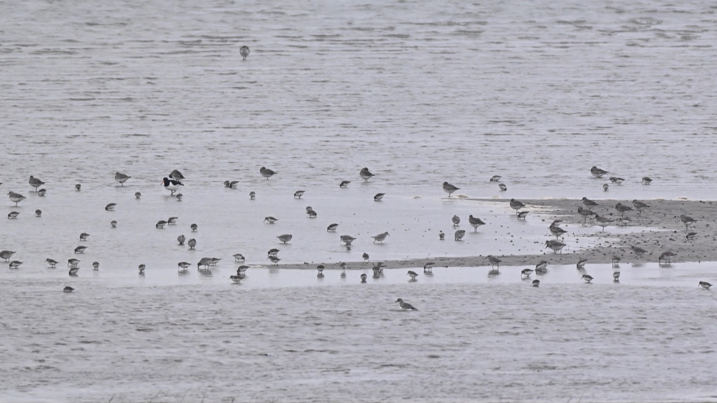 Die beste Zeit zum Beobachten von Wattvögeln ist die auflaufende Flut. Dann versammeln sich sehr viele verschiedene Vögel am Ufer.