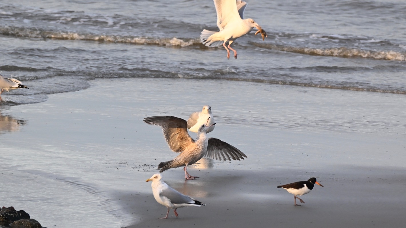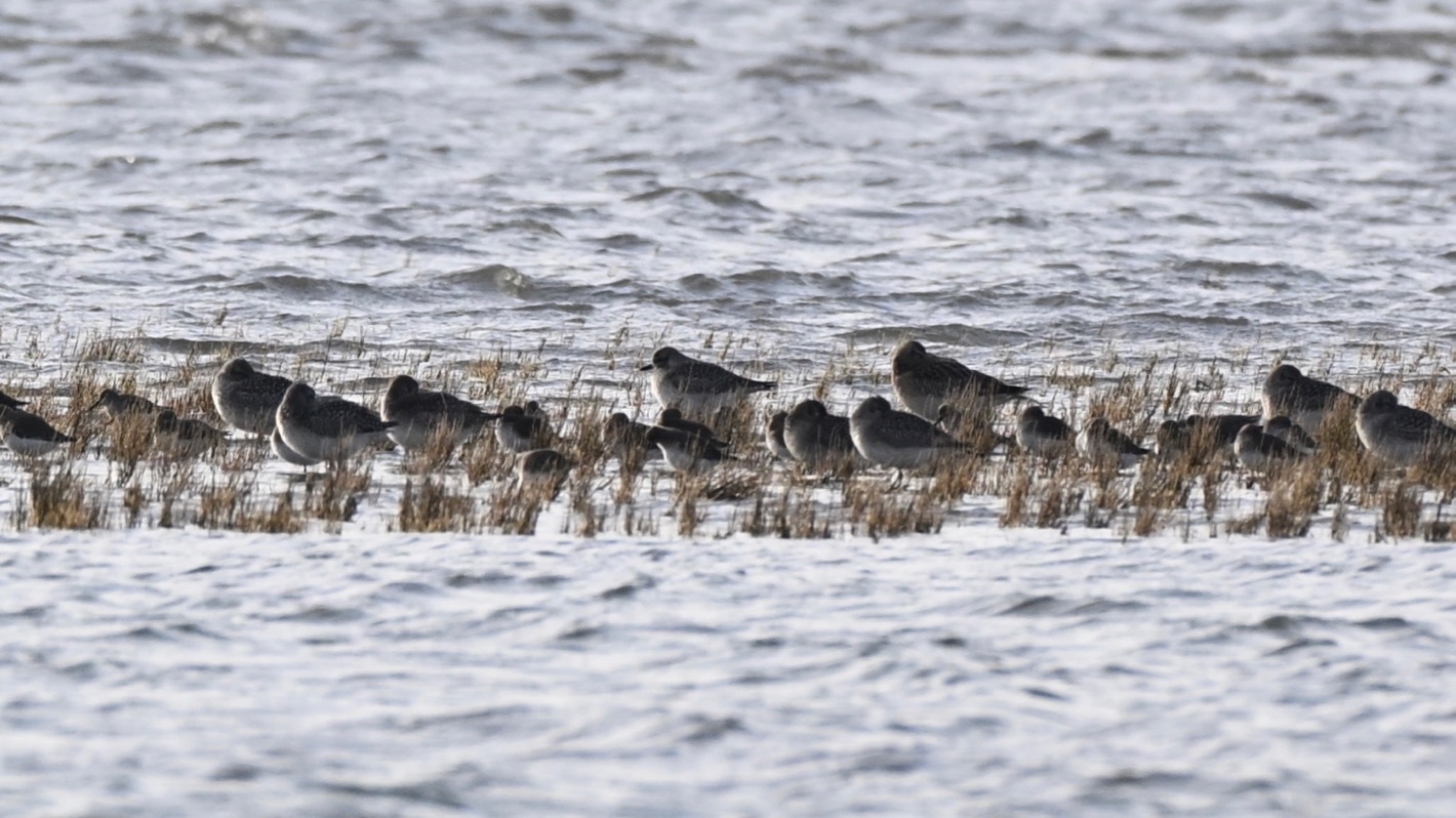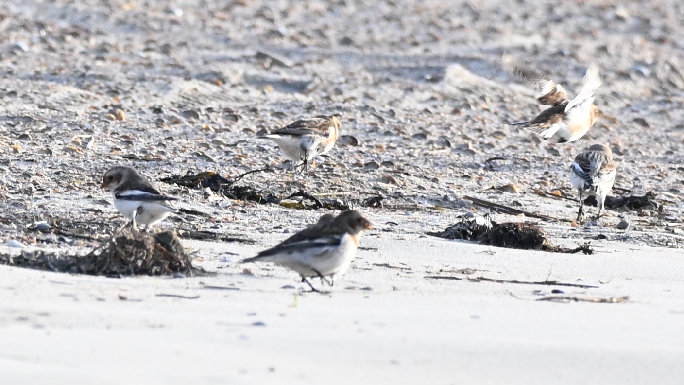 Am östlichsten Ende der Dünen sehe ich zum ersten Mal in meinem Leben einen Schwarm Schneeammern. Leider sind sie für gute Fotos zu weit entfernt.