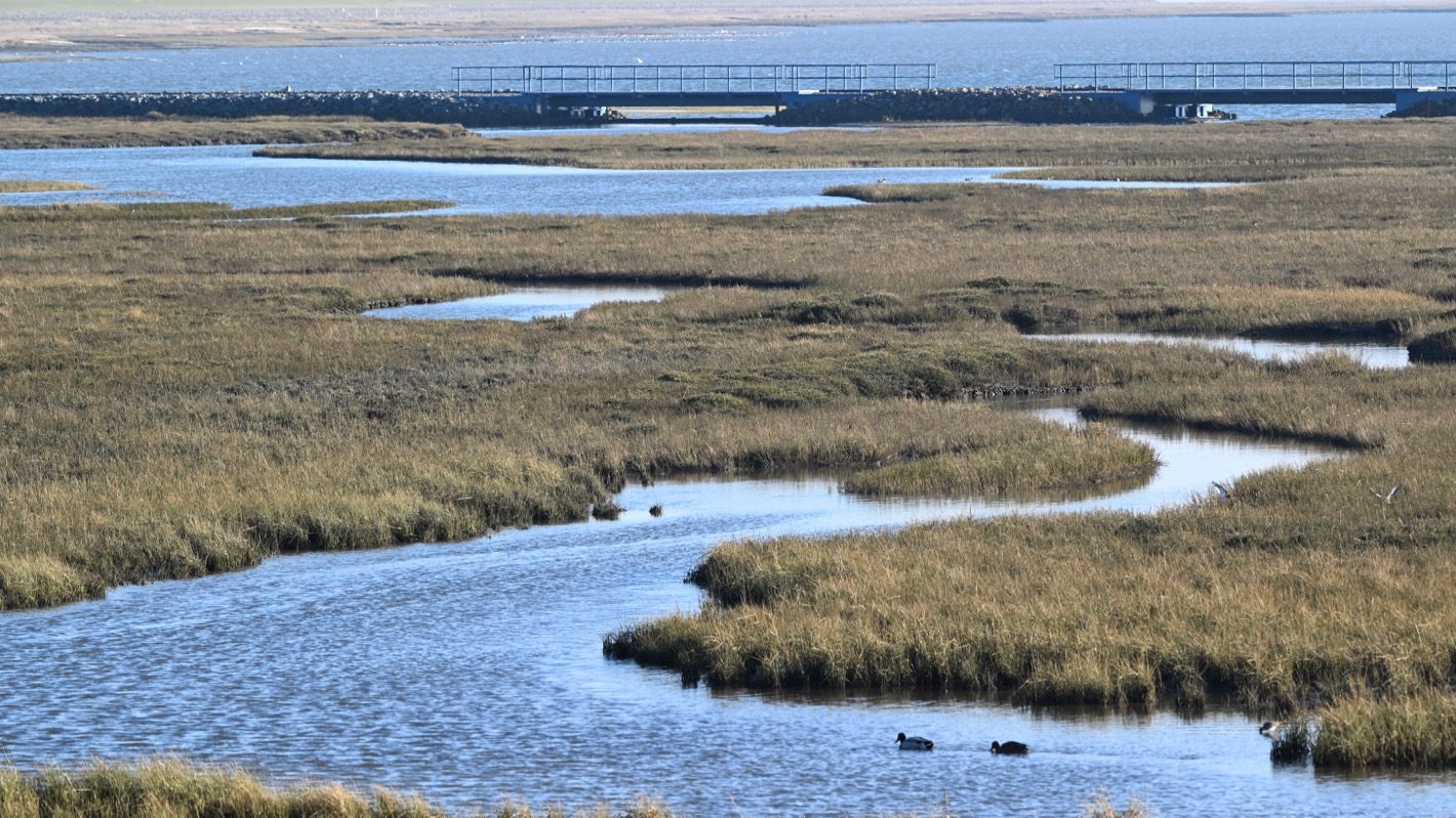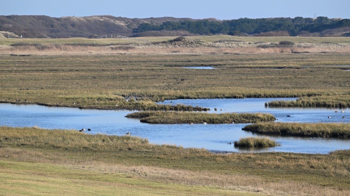 Vor allem kurz vor der Flut versammeln sich viele Wasservögel in den kleinen Gewässern auf den Salzwiesen.