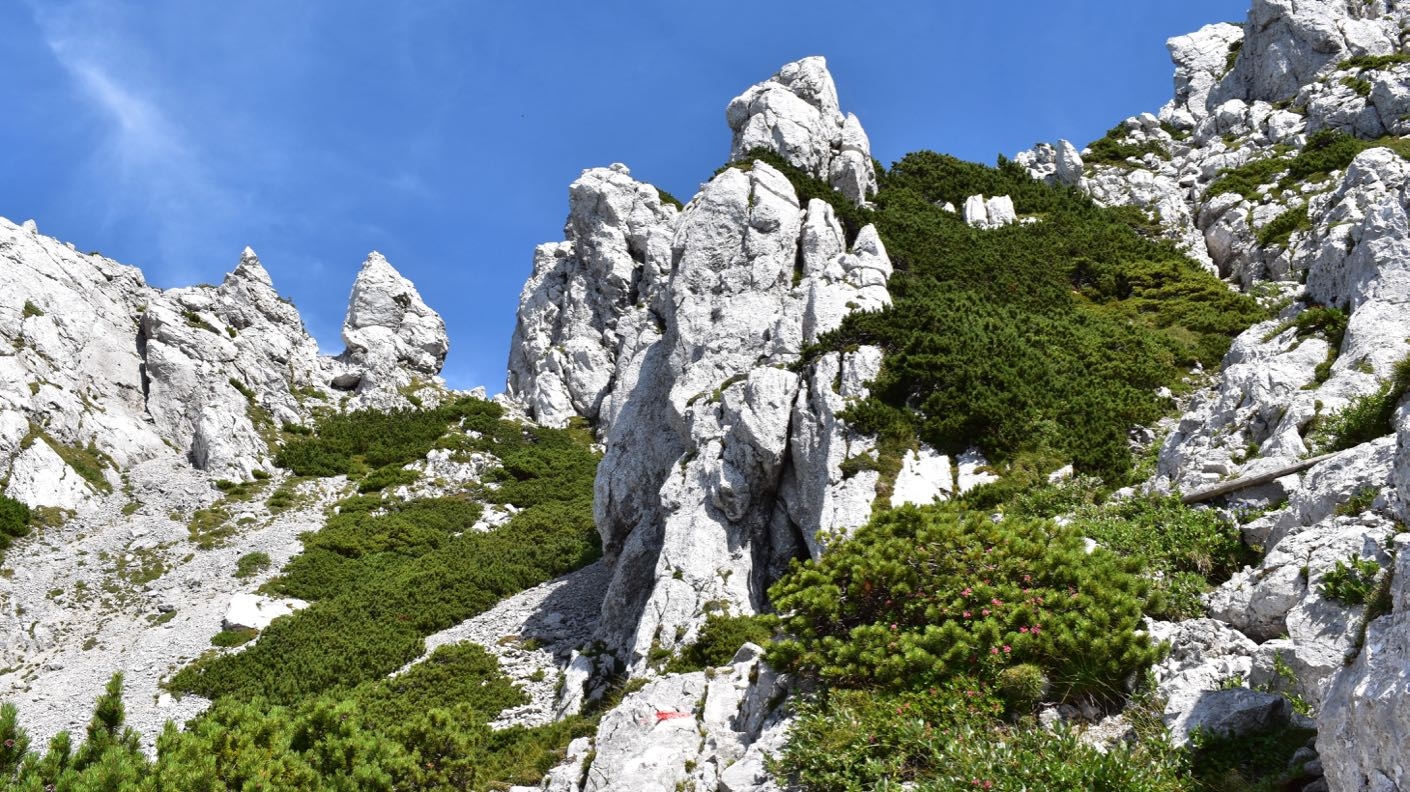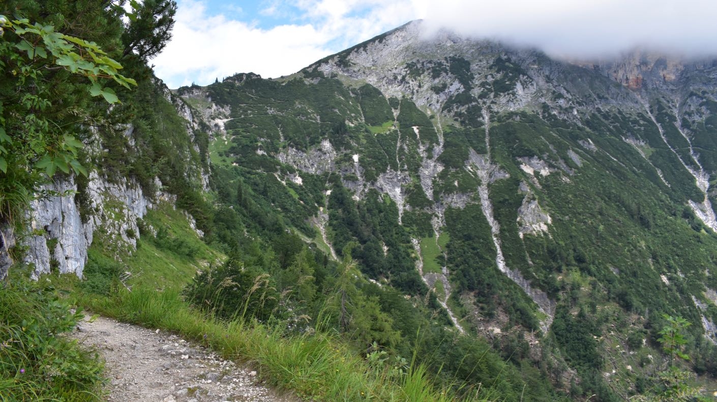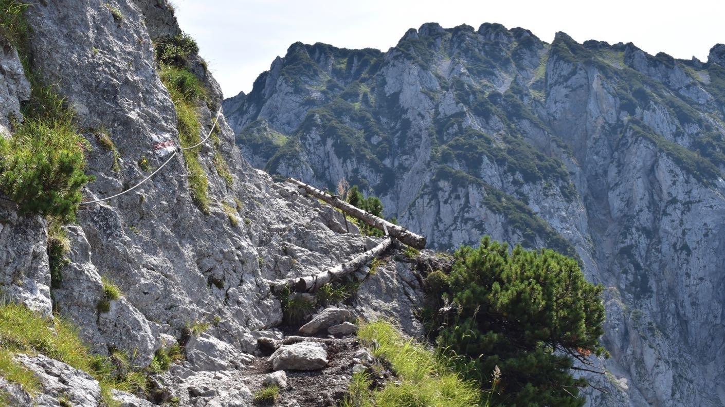 Der Weg führt zuerst noch durch den Wald, dann unter einer Felswand vorbei und schließlich in Serpentinen hinauf zum Gatterl genannten Pass auf ca. 1600 m. Auch der restliche Aufstieg zum Stöhrhaus ist technisch problemlos.