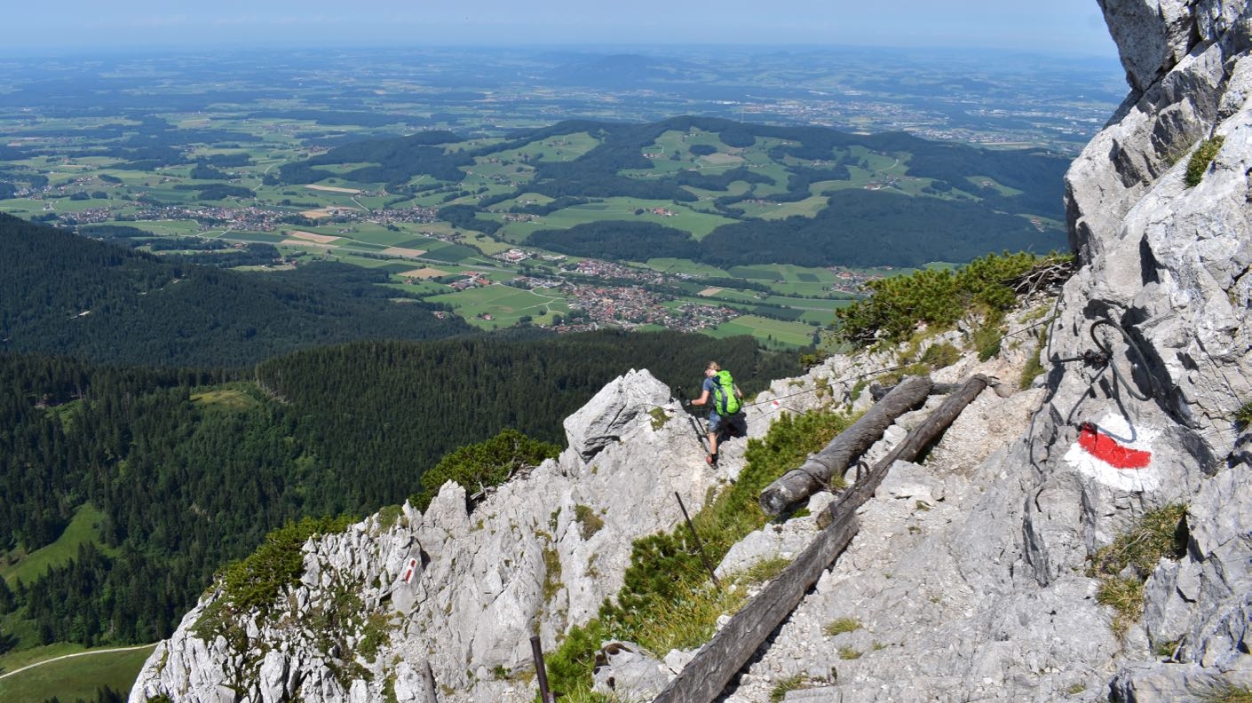 Nun wird der Weg deutlich steiler und anspruchsvoller, aber auch schöner. Da zum Reichenhaller Haus kein Materiallift führt, ist an einer Stelle am Waldrand ein großer, überdachter Stapel mit Holzscheiten. Auf einem Schild steht: "Liabe Leit - seits gscheit, nimmt ajeda oa Scheid, dann machts de Wirtsleit vom Staufen a große Freid. Berg heil."