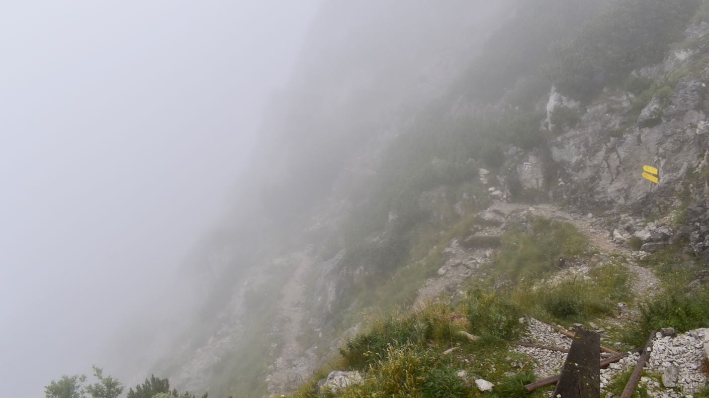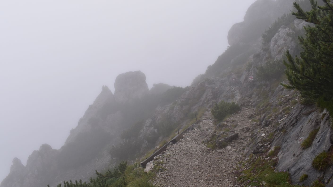 Der Abstieg von der Hütte bis zum Bahnhof Bad Reichenhall ist 8,4 km lang und hat 1282 Höhenmeter. Leider marschiere ich heute die meiste Zeit durch Nebel und sehe wenig von der schönen Umgebung.