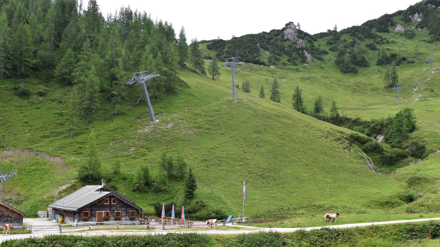 Eigentlich wollte ich von der Hütte noch zum nahen Gipfel des 1972 m hohen Berchtesgadener Hochthron aufsteigen, doch wegen der Wolken verzichte ich darauf.