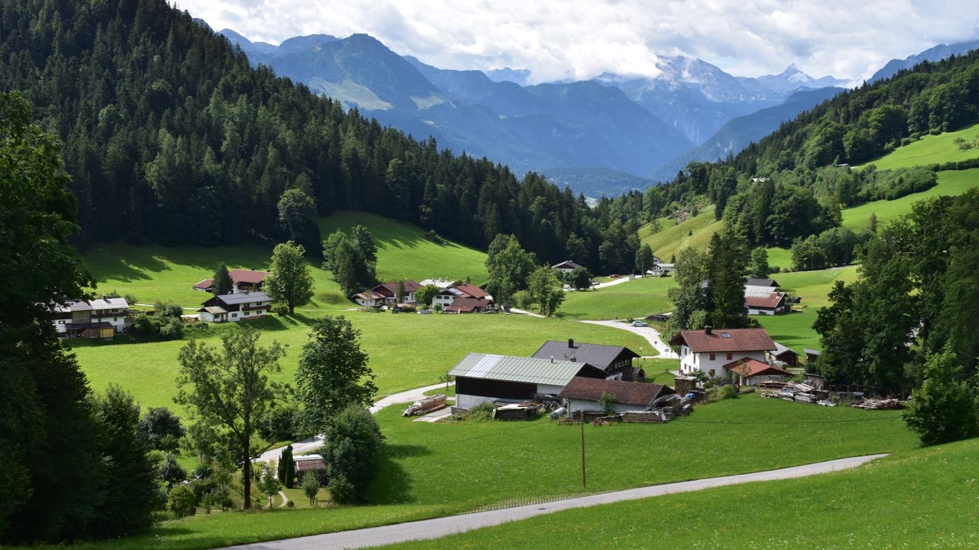 Von Berchtesgaden fahre ich mit dem Bus bis zur Haltestelle Hintergern. Bis zur Hütte sind es ab hier 7,9 km mit 1114 hm Aufstieg. Zuerst spaziere ich an einigen Häusern des Weilers vorbei.