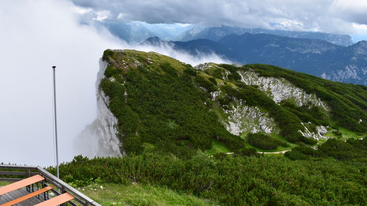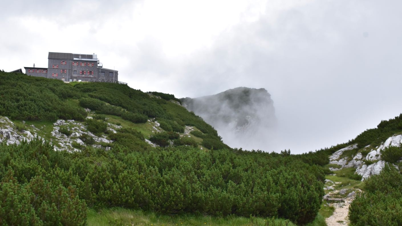 Vom Schneibsteinhaus dauert der Aufstieg zum wenige Meter jenseits der Grenze zu Österreich stehenden Carl-von-Stahl-Haus des ÖAV nur eine Viertelstunde. "Schlechtwettertage" haben auch gute Seiten. Der Blick über die Grenze wirkt gerade durch die Wolken jetzt besonders interessant.