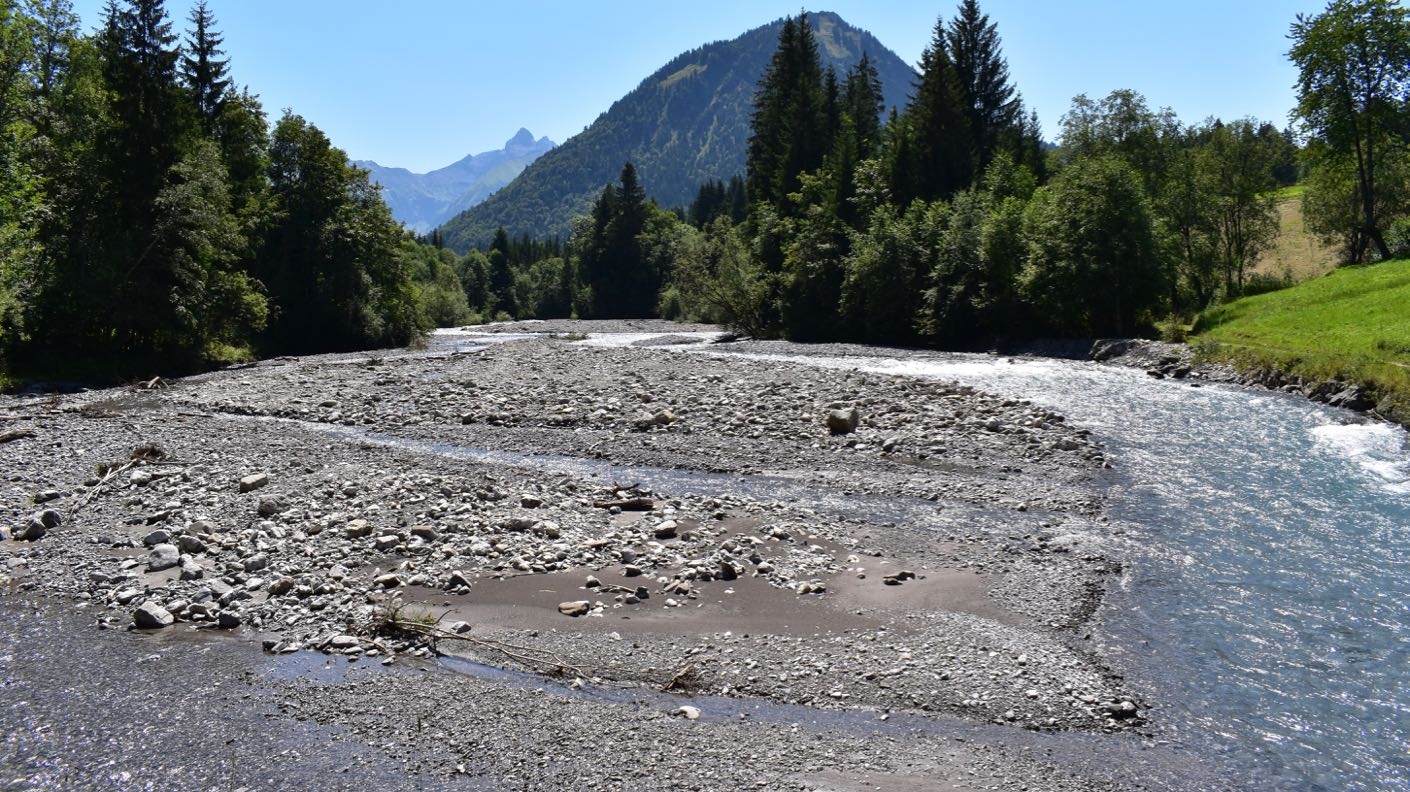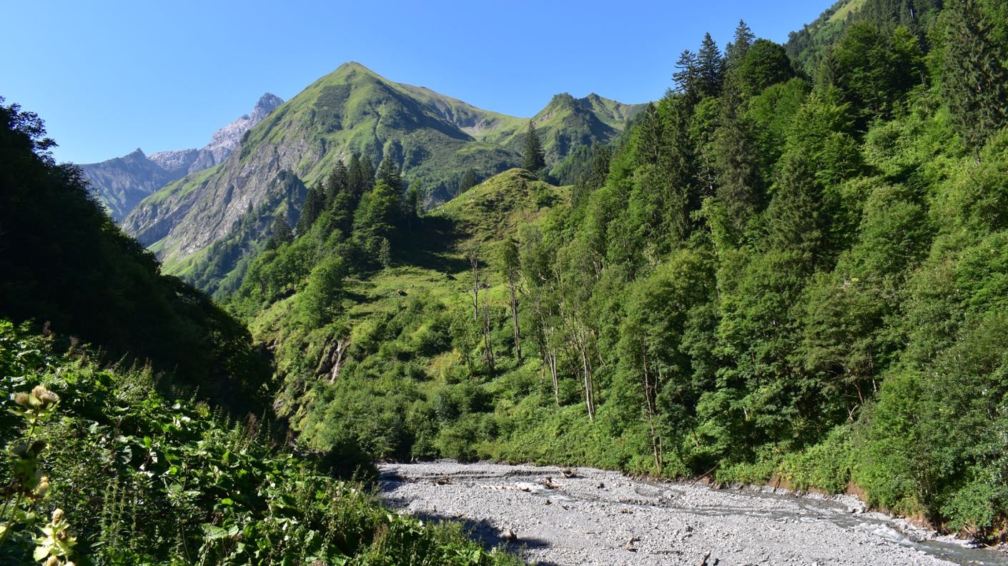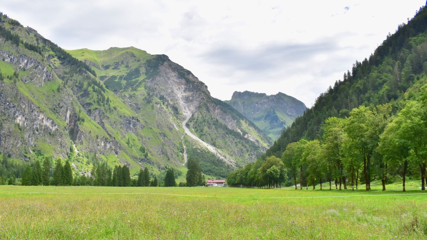 Vom Bahnhof Oberstdorf gehe ich zuerst zur Talstation der Nebelhornbahn, wo unglaublich viele Leute in der Warteschlange für eine Bergfahrt stehen. Von hier wandere ich zuerst entlang der Trettach und zweige dann ins Oytal ab.