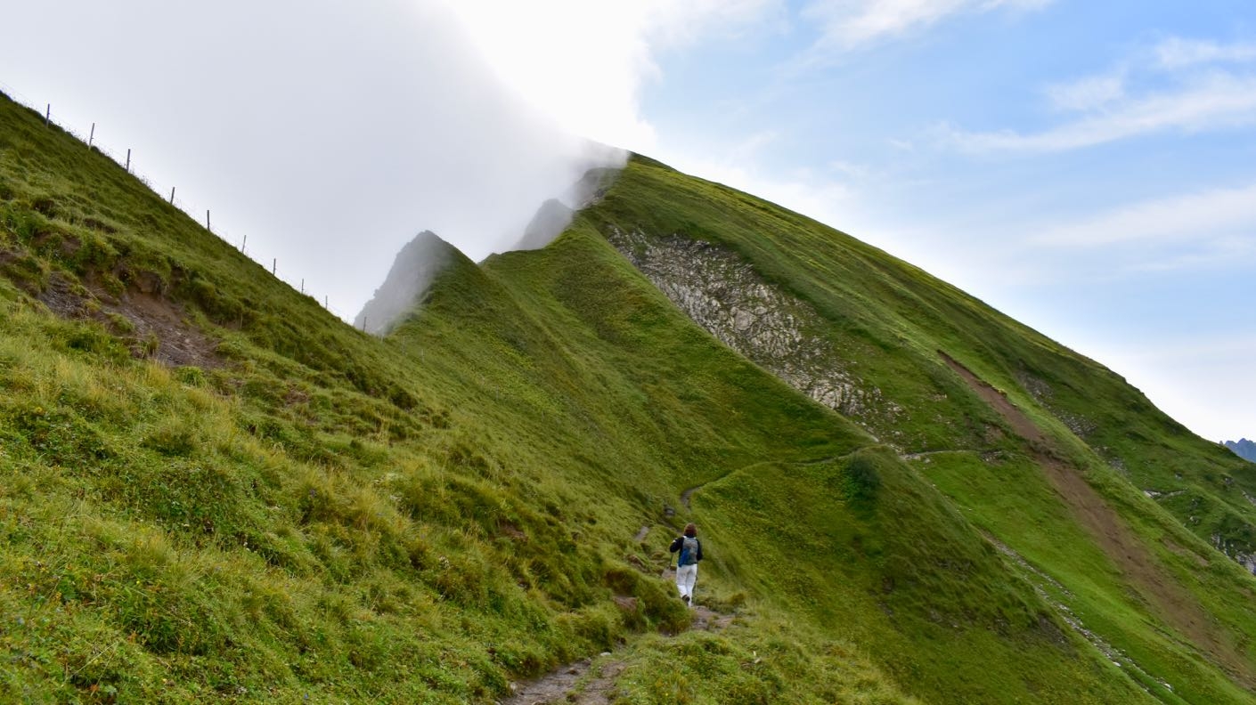 Zuerst geht es kurz hinab ins Bergündeletal, aus dem ich gestern schon aufgestiegen bin. Dann folgt der erste von vielen Anstiegen dieses Tages. Der Weg zum 2007 m hohen Himmelsecksattel ist relativ leicht.