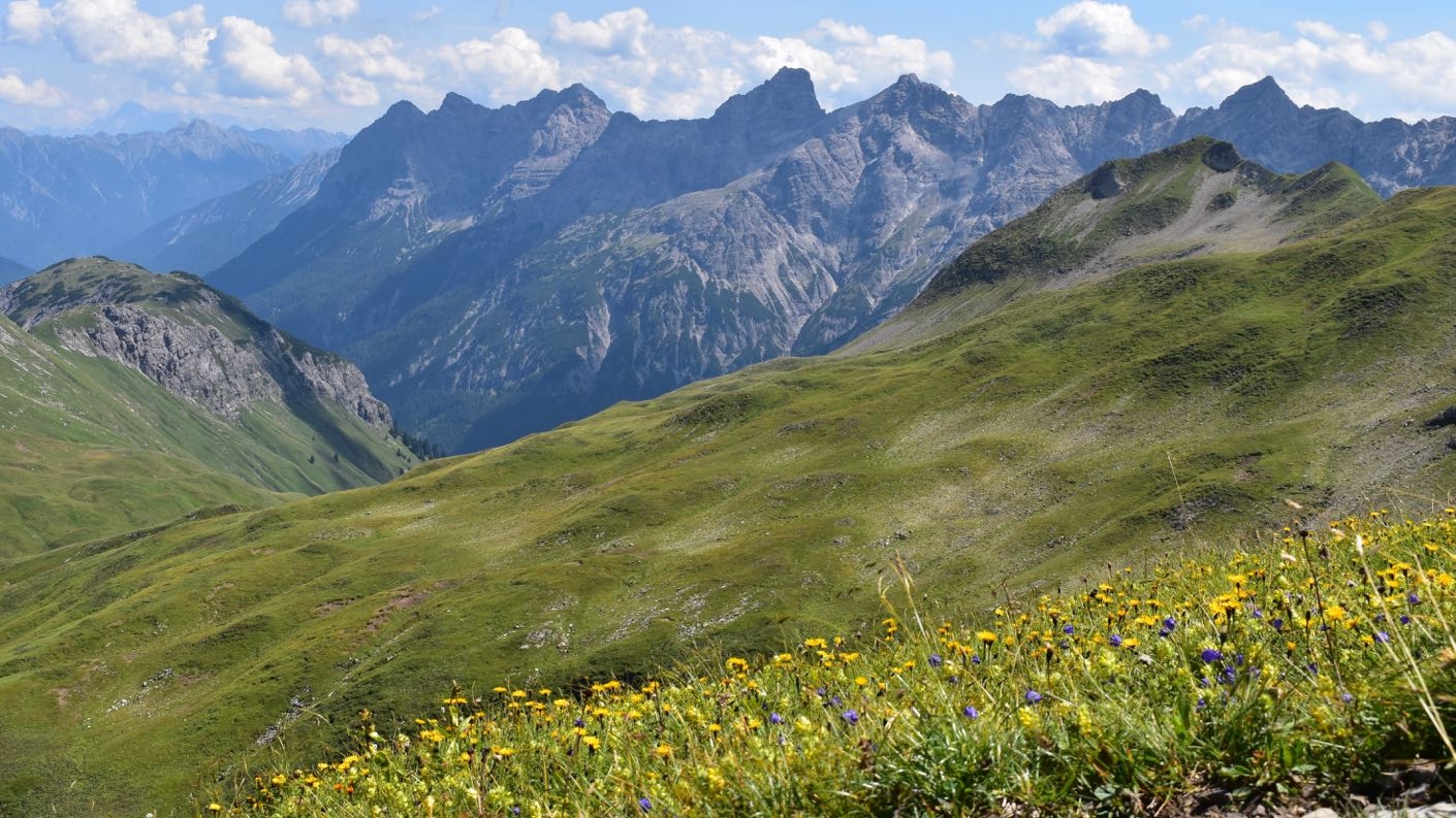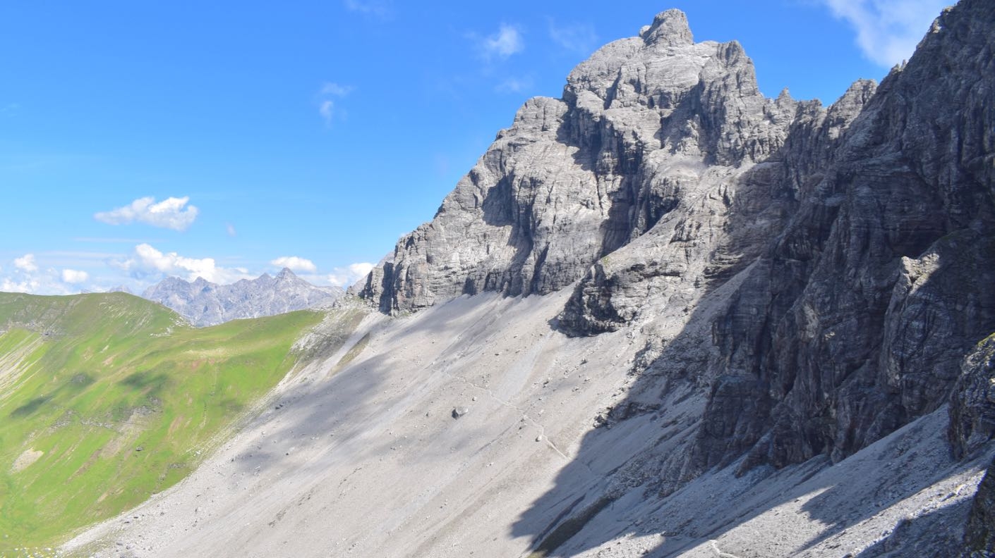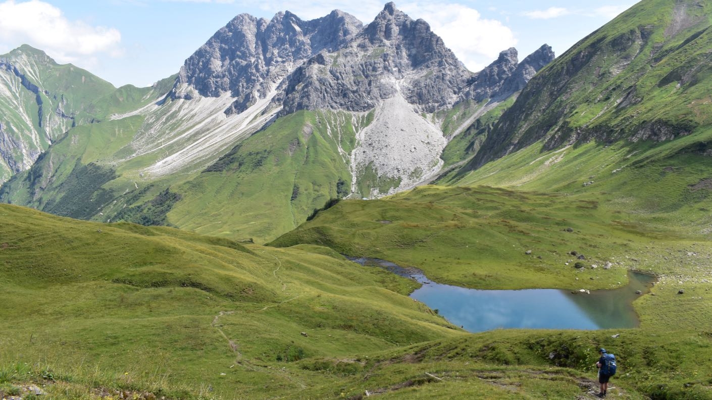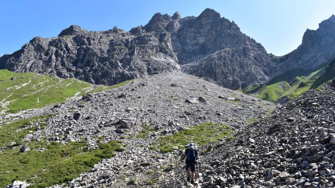 Am nächsten Morgen brechen Thomas und ich schon früh auf, denn es wartet eine lange Etappe auf uns. Von hier bis zur Kemptner Hütte sind es 17,8 km mit 1395 hm Aufsteig und 1397 hm Abstieg. Offiziell wird die Dauer mit 9 Stunden angegeben.