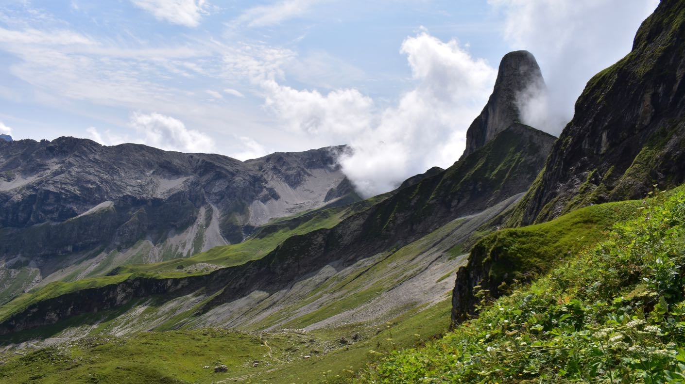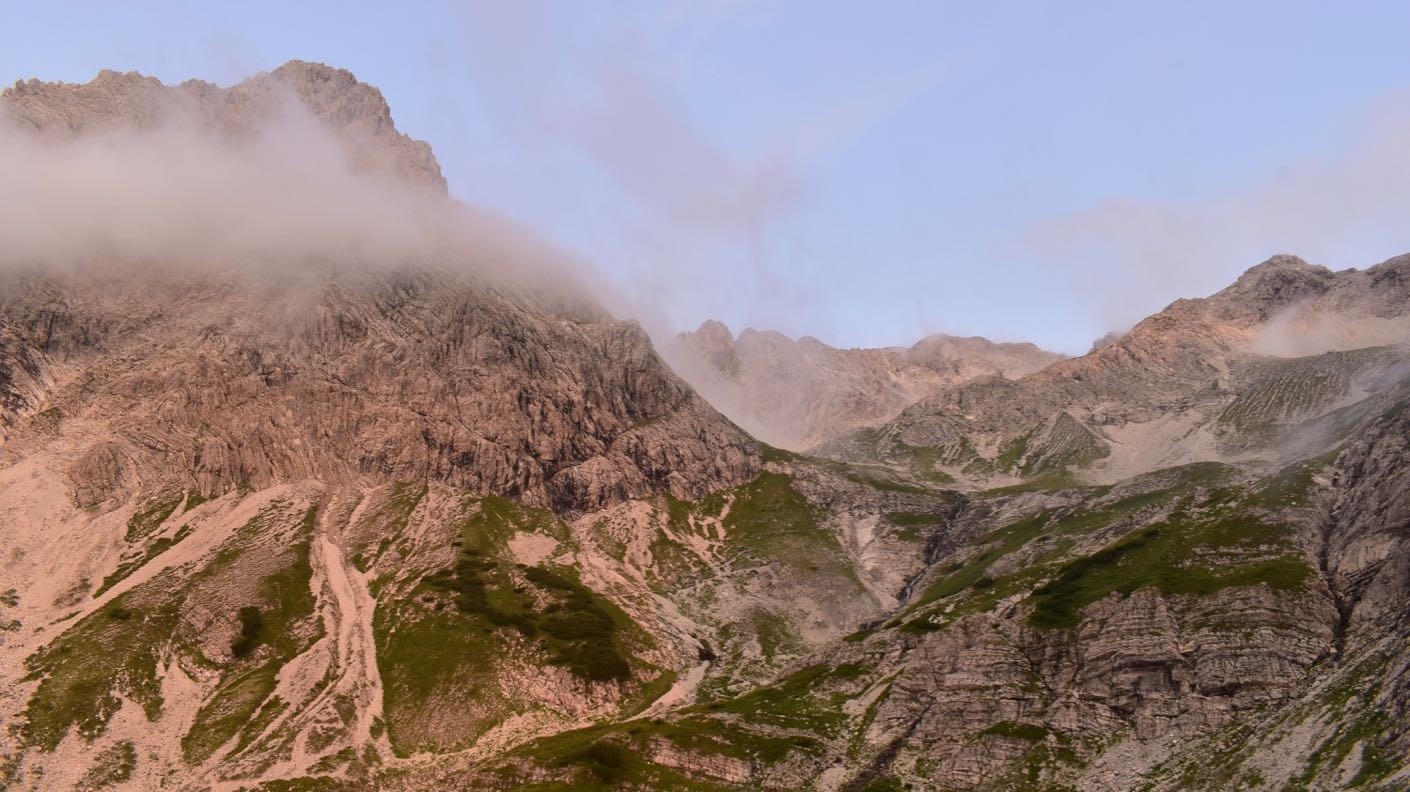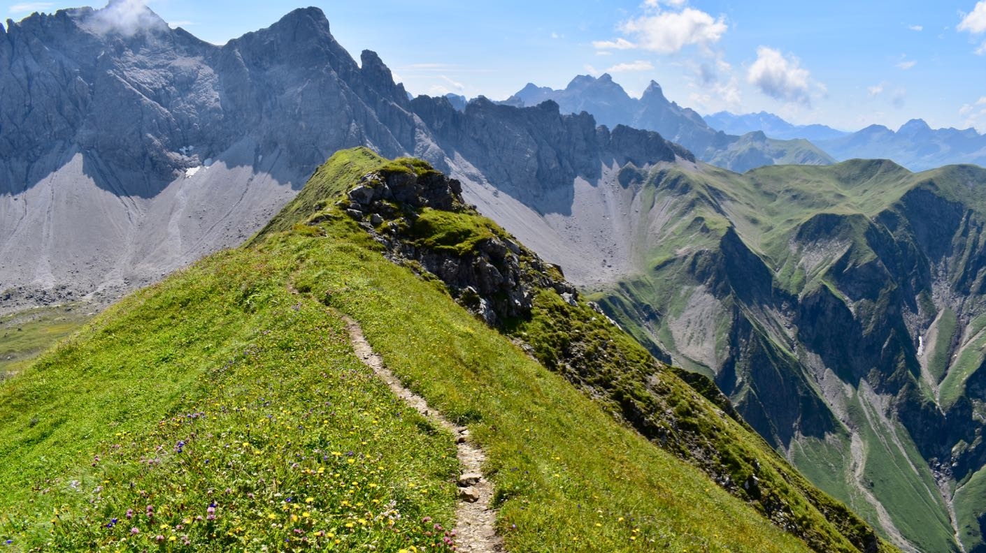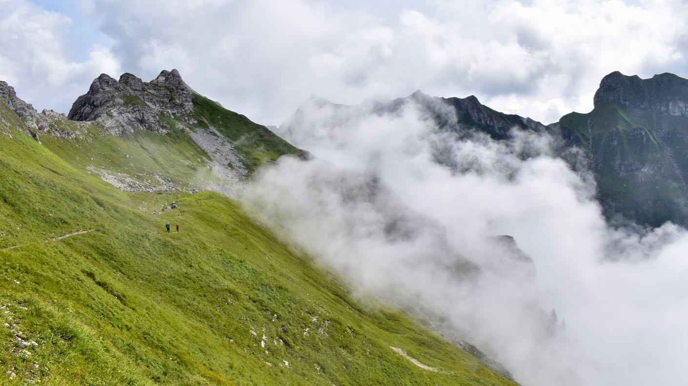 Am nächsten Morgen brechen Thomas und ich schon früh auf, denn es wartet eine lange Etappe auf uns. Von hier bis zur Kemptner Hütte sind es 17,8 km mit 1395 hm Aufsteig und 1397 hm Abstieg. Offiziell wird die Dauer mit 9 Stunden angegeben.