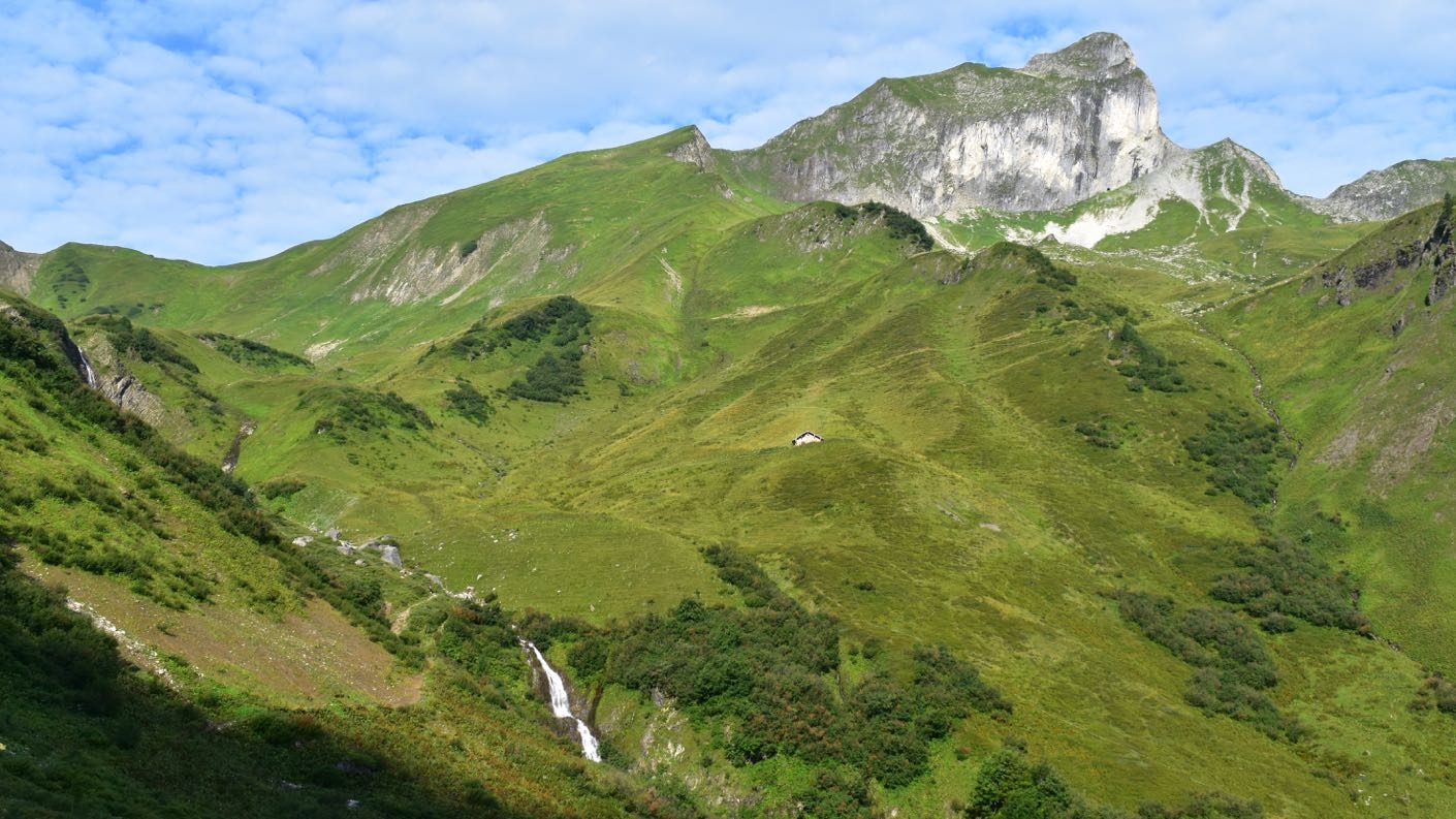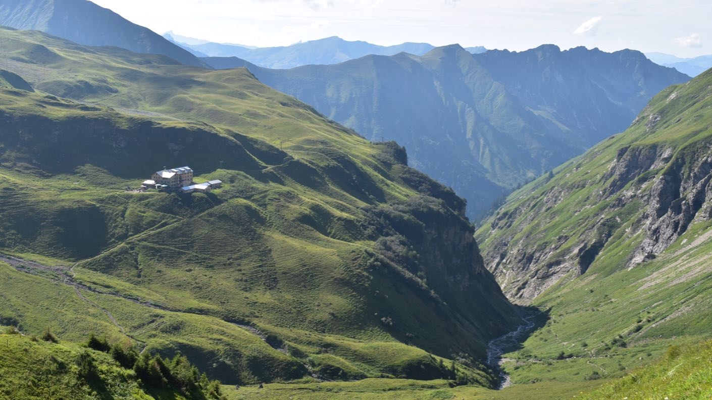 Schließlich steige ich wieder zur Alpenvereinshütte hinab, hole meinen Rucksack und wandere weiter.