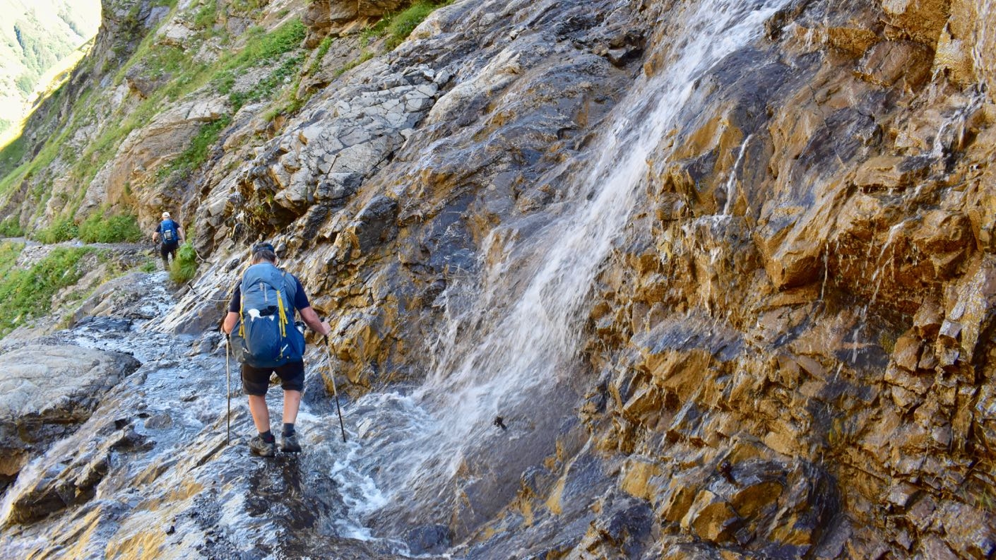 Der Steig führt an Wasserfällen vorbei. Vor einigen Jahren bekam ich hier an manchen Stellen nasse Füße. Heute ist alles ok.