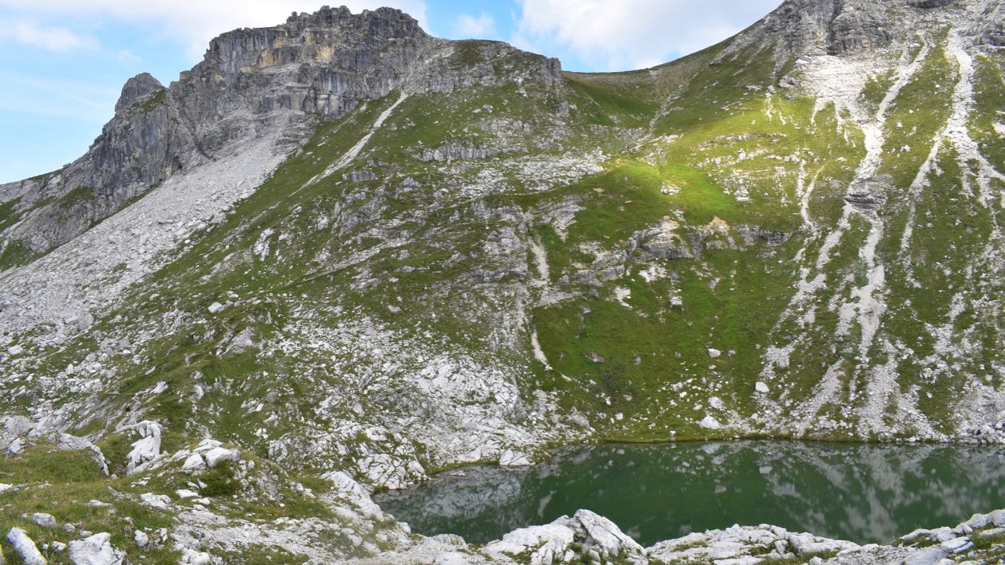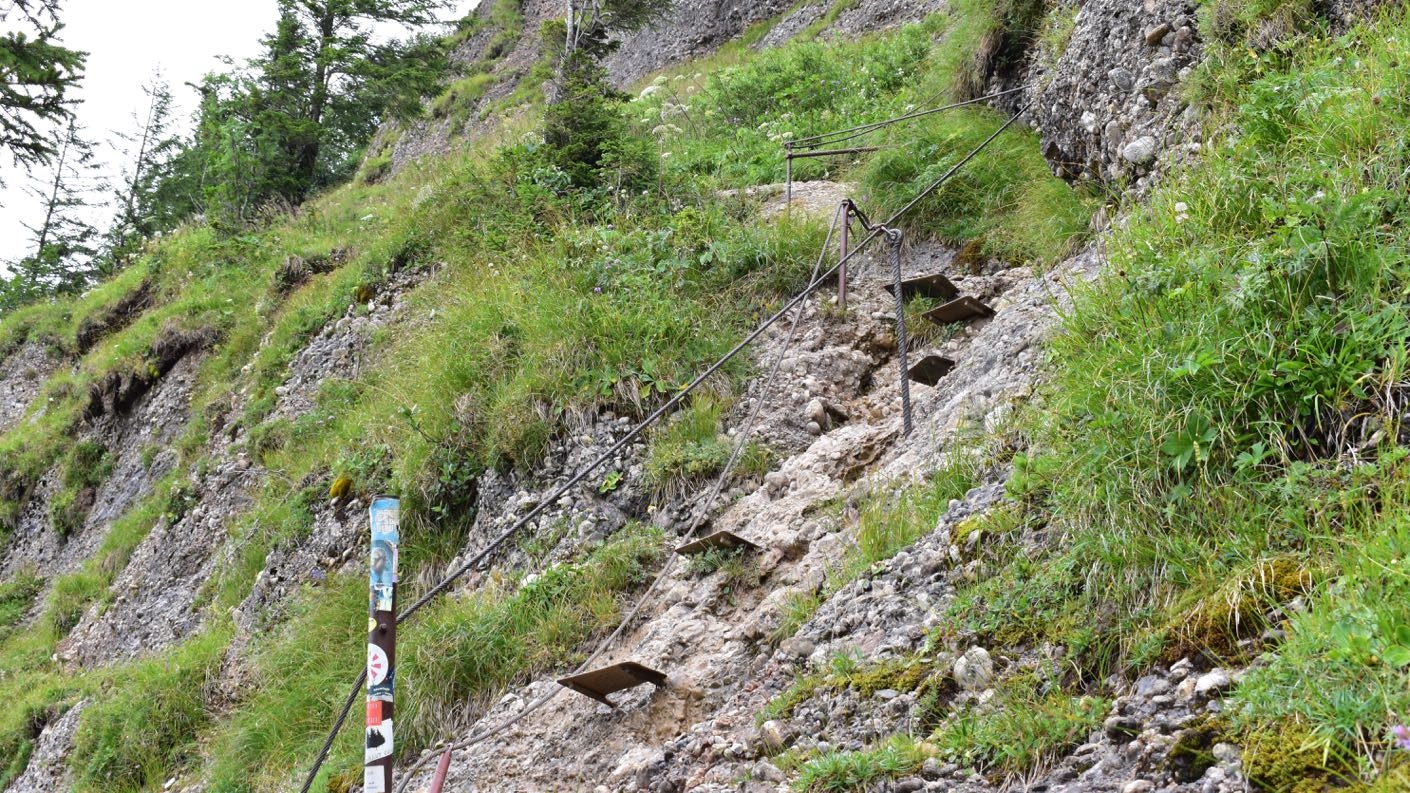 Danach geht es viele Kilometer weit immer abwechselnd auf und ab. An manchen Stellen muss man auch die Hände zum Vorwärtskommen benutzen. Auf dem Weg vorbei an Laufbichlsee und Koblatsee sind heute viele Wanderer unterwegs.