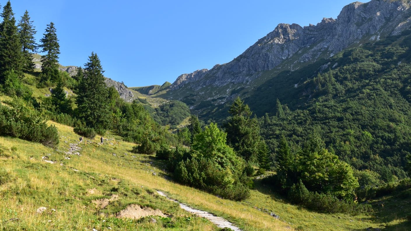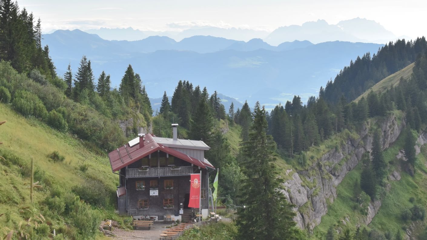 Die Schwarzenberghütte liegt mit 1380 m deutlich tiefer als die anderen Alpenvereinshütten im Allgäu und kann auch von Familien mit kleinen Kindern vom Giebelhaus problemlos erreicht werden.